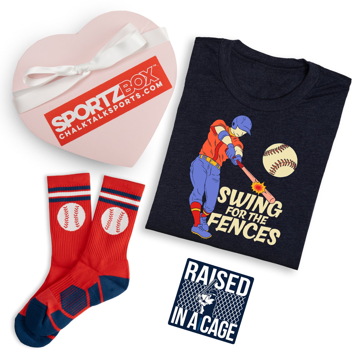 Each Heart Baseball SportzBox includes a thoughtful mix of a baseball tee, comfortable socks, and a sticker, all bundled together and packaged in a festive heart-shaped box for one low price of just $38. No wrapping required — just grab, gift, and hit it out of the park with your favorite baseball player.