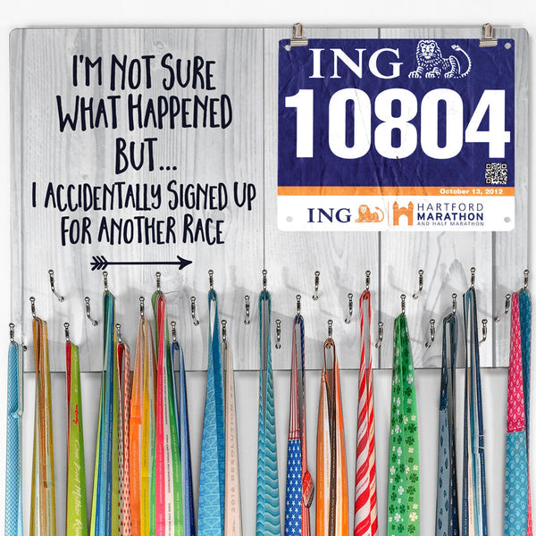 These custom printed medal and bib displays come in a wide assortment of colors and designs inspired by running. Recessed slots allow you to hang the display on the wall without gaps or edges. If your legs always have room for another race, then a Hooked on Medal displays have the space to place the bibs and medals that you’ve earned.