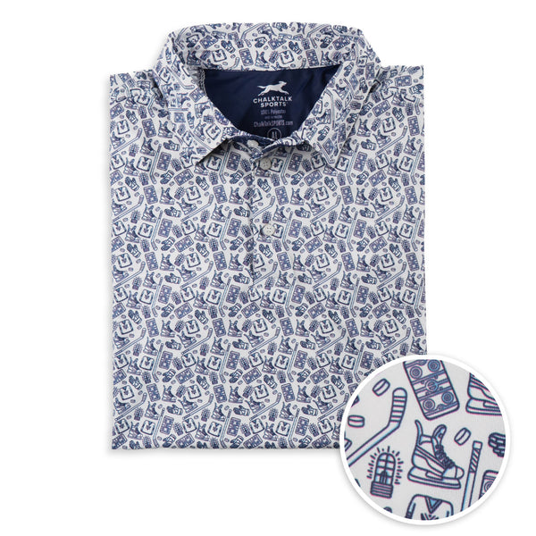 Our moisture-wicking hockey polos will not wrinkle and are made from a six-way stretch, 40+ UV protectant performance material that will keep you comfortable all day long. Each of our hockey polos is designed by our team of brilliant graphic designers who understand the importance of reppin' that hockey lifestyle off the ice.