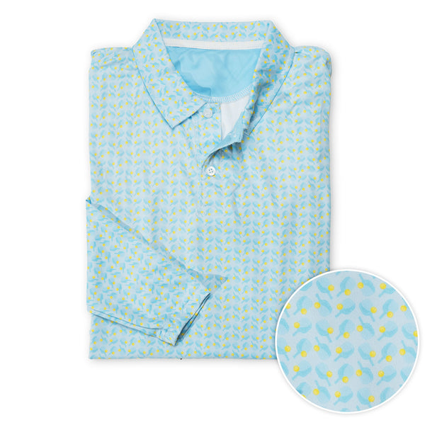 Get ready in style with our Pickleball Long Sleeve Polos. Crafted with our moisture-wicking technology, these polos will keep you cool and dry, wherever you're heading. Made from a six-way stretch fabric, they offer unrestricted movement, giving you the comfort and performance. Our Pickleball Long Sleeve Polos are perfect for athletes who want to look great while showcasing their love for the game. Serve up some style with these versatile and comfortable polos.