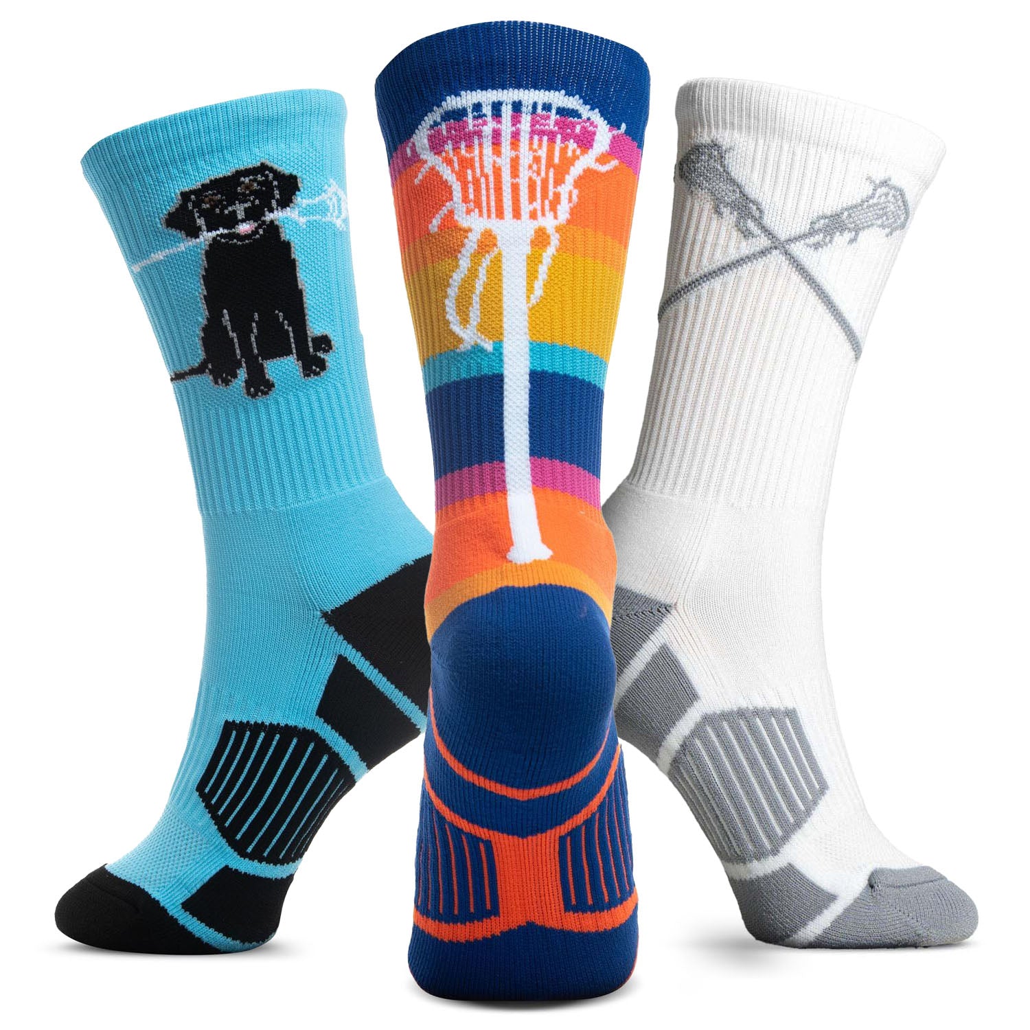 This LAX Life set of mid-calf girls lacrosse socks comes with a variety of colors and lacrosse designs which make them the perfect socks wear with a variety of outfits. These lacrosse crew socks don't only complete an outfit but they are also built for all-day comfort for any activity. Lacrosse players won’t have to worry about their feet while wearing these socks, made with performance material their feet are sure to stay dry and comfortable. Along with being moisture-wicking, these crew lacrosse socks have a cushioned footbed and supportive arch band to help absorb the impact of physical activities. Purchasing this mid-calf lacrosse sock set results in a savings of over 10% compared to buying them individually.